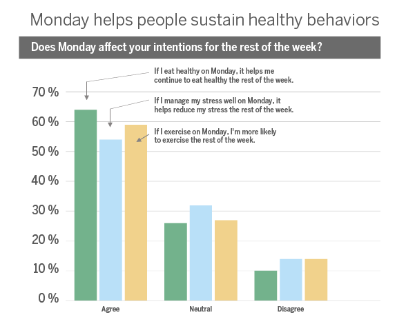 Engaging in healthy behaviors on Monday helps people sustain healthy behavior throughout the week.